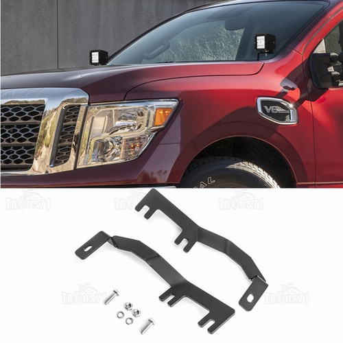 The Hood LED Work Light Bracket could fit for 2016-2019 Nissan Titan and is compatible with aftermarket 3" LED cube pod lights.