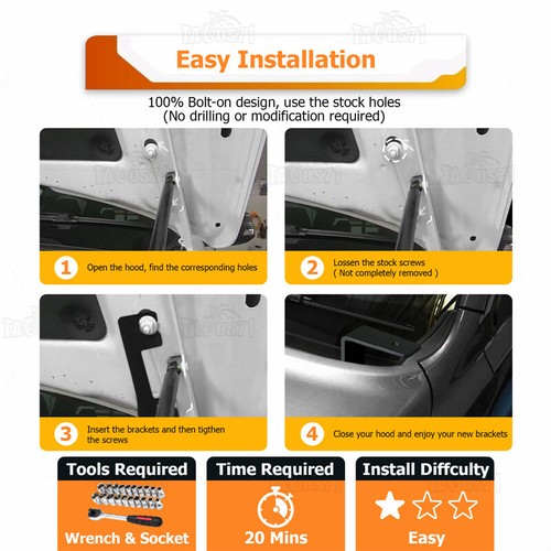 This bracket could provide two additional mounting holes in your vehicle hood to mount aftermarket LED cube lights for enhancing illumination and offering safer night driving.