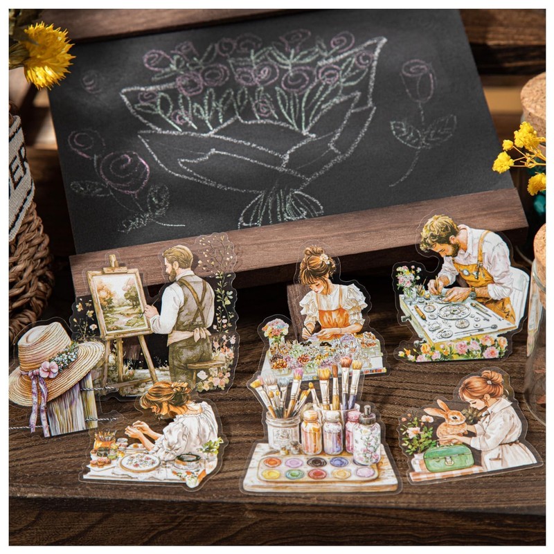 Scrapbook stickers contain 6 motifs on the theme of profession. Each section contains 15 pieces, a total of 90 stickers. The design elements are rich and florist, painter, dressmaker, farmer, veterinarian and musician, which can give your creations fantastic colours.