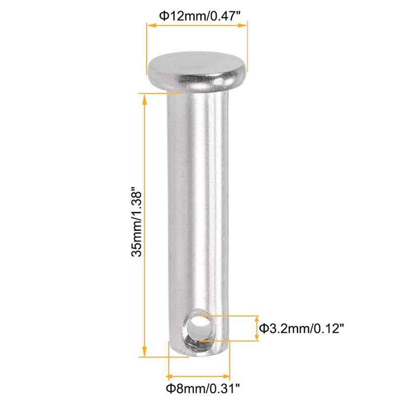 - 【Size & Package】The size of the pins is 0.31 x 3.18 inches/ 8 x 35mm(Dia x L), Aperture: 0.12 inch/ 3.2mm. The package includes 4pcs clevis pins.