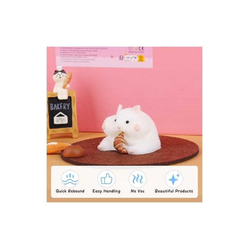 • Diversos moldes: nuestro kit de squishy taba viene con muchos tipos de moldes, como taba squishes gato, animales y lunas. Puedes usar tu imaginación y crear tus propios trabajos de squishes combinando diferentes colores