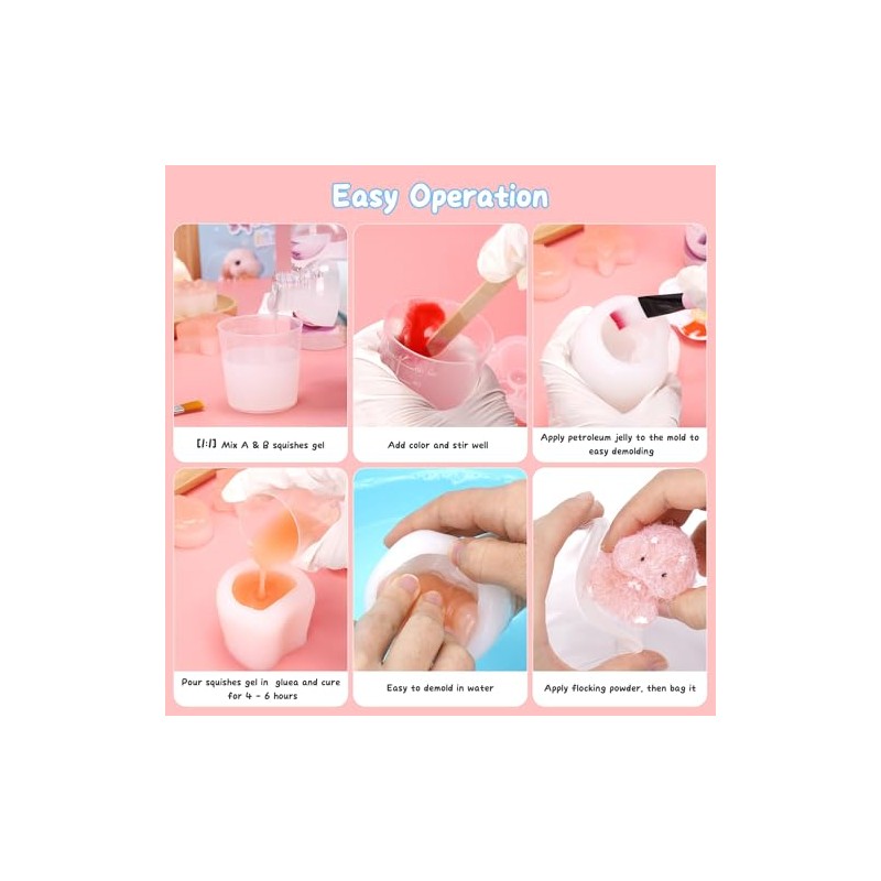 • Fácil de operar, disfruta de la diversión de bricolaje: el kit de fabricación de blandos Taba viene todo lo que necesitas para hacer squishes, viene con gel de silicona líquida, pintura acrílica, vaselina, polvo flocado, mezcla A y B en una relación de peso 1: 1 en una taza medidora, agrega tinte a tu color preferido, revuelve durante 3-5 minutos hasta que esté completamente mezclado, luego vierte en el molde, se puede curar en 4-6 horas. con autoservicio defoo aming características. Combina libremente según tus propias preferencias y creatividad.
