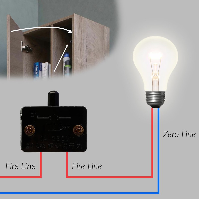- Smart Function: This smart switch automatically turns off the lights when the cabinet door is closed. As soon as you open the door and release the switch, the light will come on, providing convenient illumination for your closets and lockers.