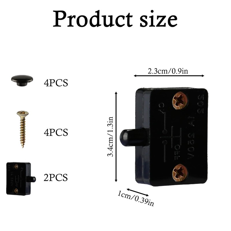 - Compact Size: This auto door switch is only 3.3*2.3*1 cm in size, ensuring that the cabinet door switch fits seamlessly into your space. With a power of 1A and a voltage of 250V, it is suitable for a wide range of low voltage applications.