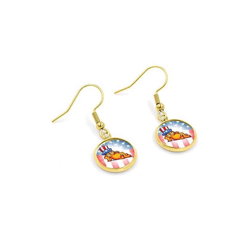 Tabby Cat Patriotic Drop Dangle Earring, Gold