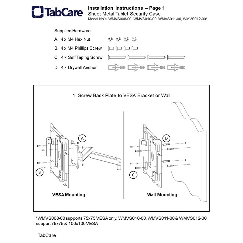 TABcare Locking Security Metal Case for Lenovo Miix 10" Tablet Supports Wall Mount 75/100 mm VESA (White, TAB 4 10 Plus)