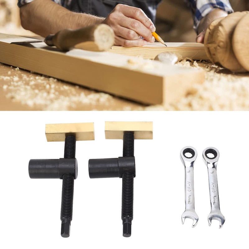 - Adjustable screw clamp: Our desktop screw clamps with dog hole are designed for the stable hold of wooden boards. Insert the column of the screw clamp into the driver hole of the workbench, select the workpiece you want to attach, then use the ratchet wrench to operate the top M12 stainless steel rod and adjust the mounting thickness manually.