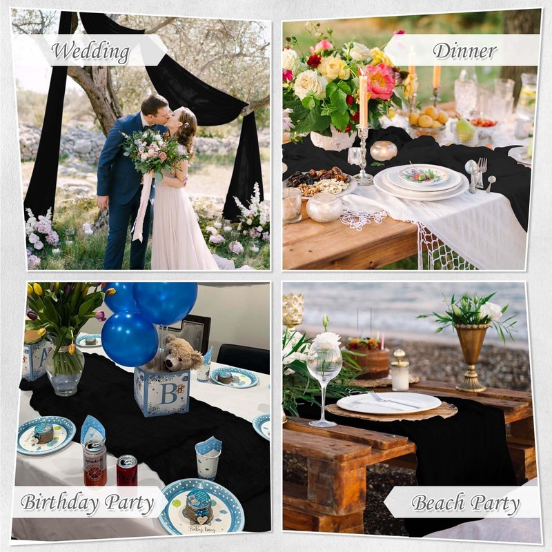 Table Runner Cheesecloth 10 FT Boho Rustic Table Runner Gauze Table Runner for Wedding Spring Decor Cheese Cloth Table Runner for Baby Shower Birthday Home Decor (Black, 5 Pack)