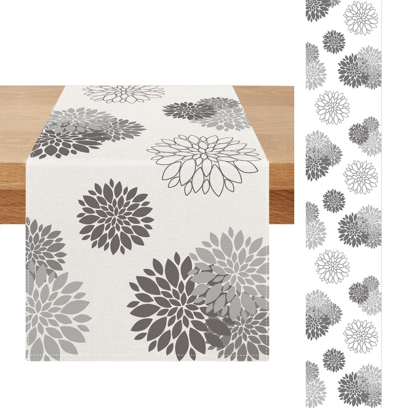 Table Runner Grey Modern Flowers 40 x 140 cm Light Grey Dahlia Beige Table Runner Attractive Farmhouse Table Centre Decor Boho Table Runner for Linen Kitchen Table Decoration Indoor Holiday Party