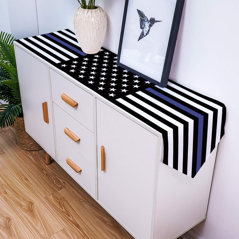Table Runner USA Flag 36 Inches Long Kitchen Table Cloth Law Enforcement Thin Blue Line Tablecloth Dresser Scarves for Independence Day Gatherings, Police Party Decorations 13"x36"