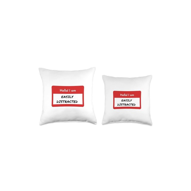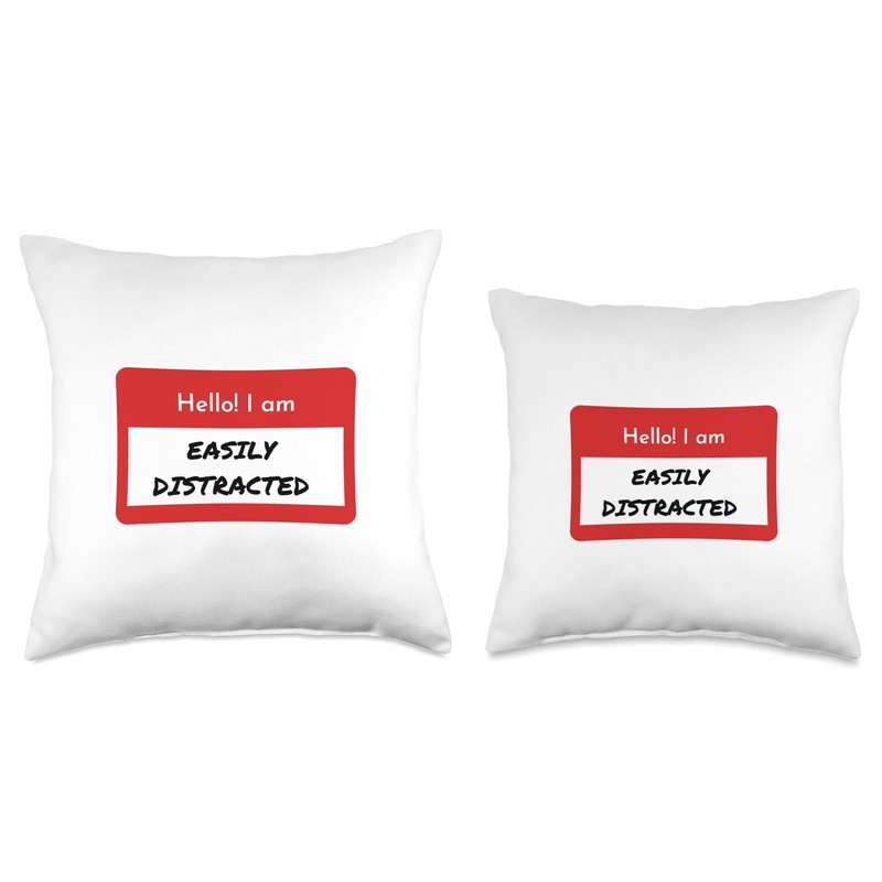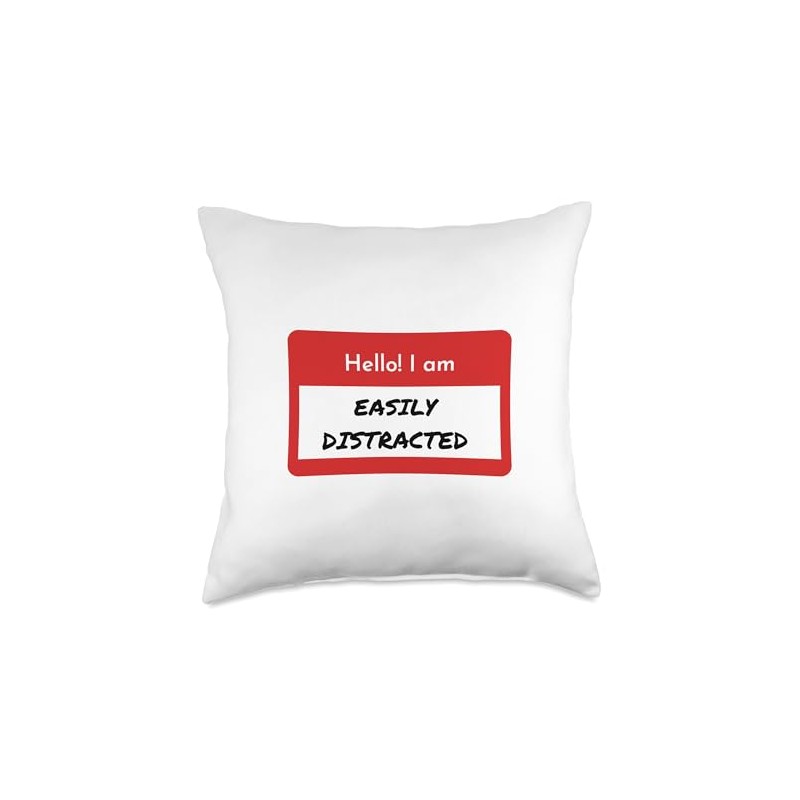 Table Talk Life Coaching Funny ADHD Hello I'm Easily Distracted Throw Pillow, 18x18, Multicolor