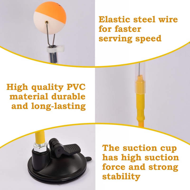 - Spring bar: the telescopic pole of the PVC trainer is made of high-quality carbon fibre, and the high spring back ensures a quick bounce of the table tennis ball. When training, you no longer have to catch the ball and run back and forth to achieve a fast hit experience.