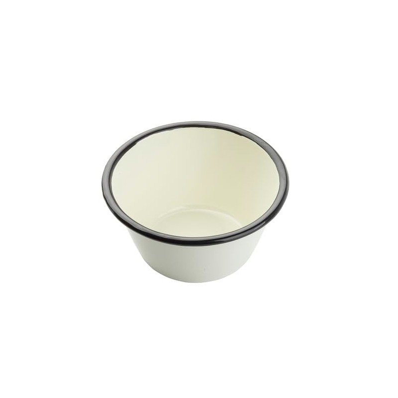 TableCraft 11151 Enamelware Collection Bowl, 14 oz, 5-1/4"L x 5-1/4"W x 2-5/8"H, Round, vitreous Porcelain Enamel Over Steel, Black/White, 10 Each per case