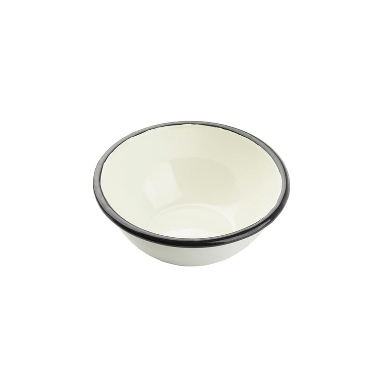 TableCraft 11152 Enamelware Collection Bowl, 24 oz, 6-1/4"L x 6-1/4"W x 2-3/4"H, Round, vitreous Porcelain Enamel Over Steel, Black/White, 10 Each per case