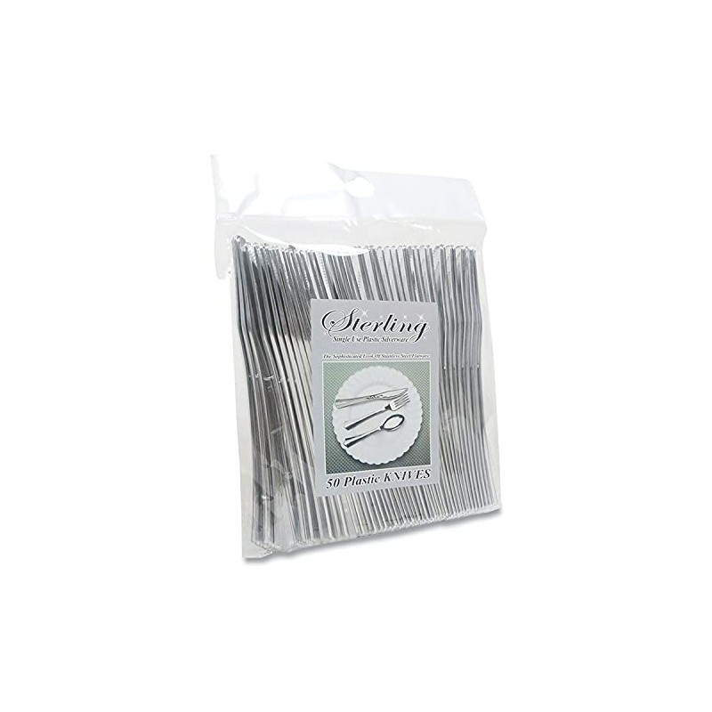 Tablemate Sterling Heavy-Duty Plastic Cutlery, Knives, Silver, 50/pack