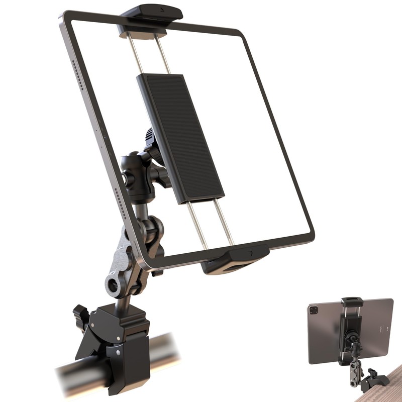 iPad Holder for Spin Bike with Super Clamp – Quickly & Securely Attach to Any Handlebar (0.51"–1.85" Diameter) – Works with Bicycles, Motorcycles, Electric Scooters, Spin Bikes, Treadmills, Ellipticals, Strollers, Shopping Carts, Boat Helms & More