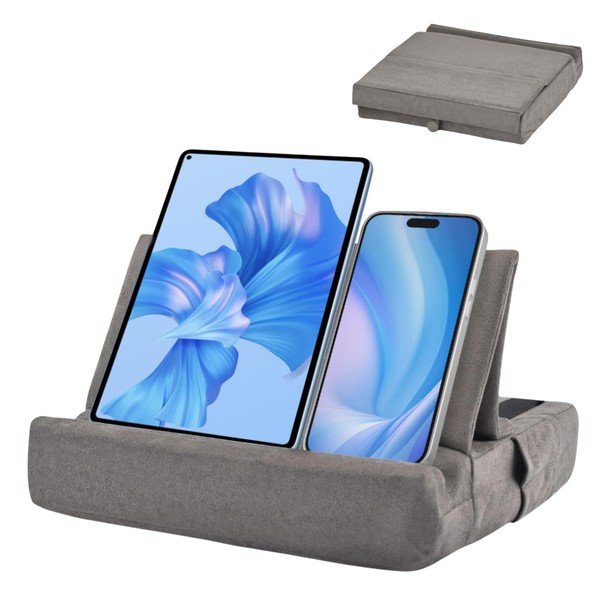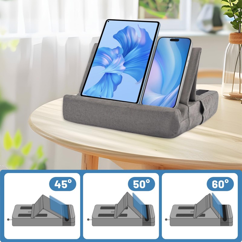 Tablet Pillow Holder, Book Stand Holder for Reading, Multi-Angle Viewing Reading Pillow Stands with Organizer Tray, Tablet Soft Pad Dock for Lap, Bed and Desk, Foldable Tablet Pillow Holder
