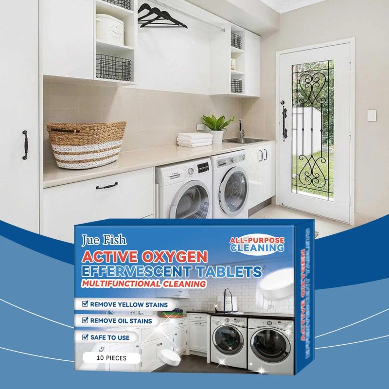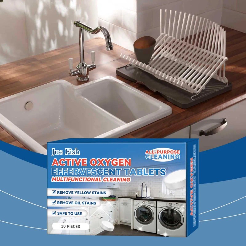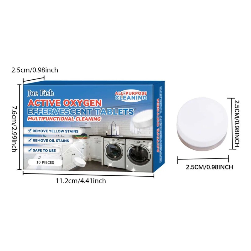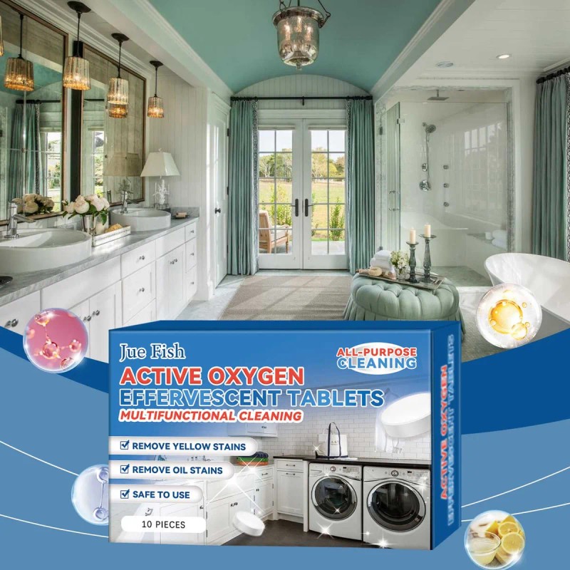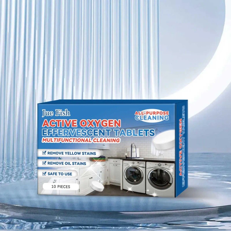 Tabletas efervescentes multifuncionales que limpian con oxígeno para eliminar manchas y descomponer la grasa.