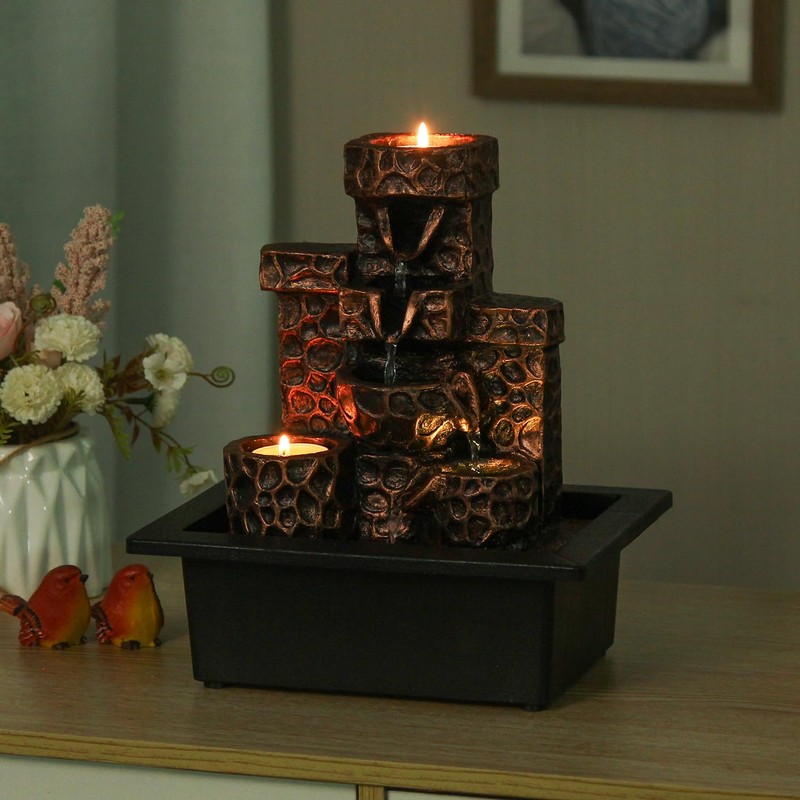 - Innovative Home Decor Design: With its compact 3-tier, featuring 1 Candles design and the theme of the color on the surface of Moon, this waterfall fountain exudes sophistication and relaxation. Elevate your space with its unique charm, and let the soothing sounds transport you to a serene oasis in your own home.