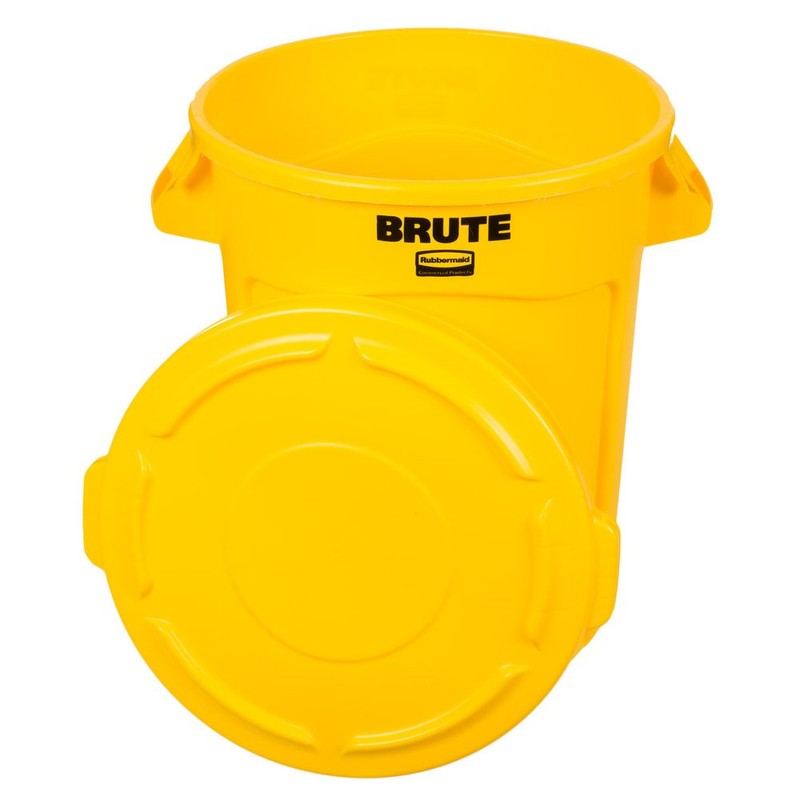 TableTop King Brute 32 Gallon Yellow Trash Can and Lid