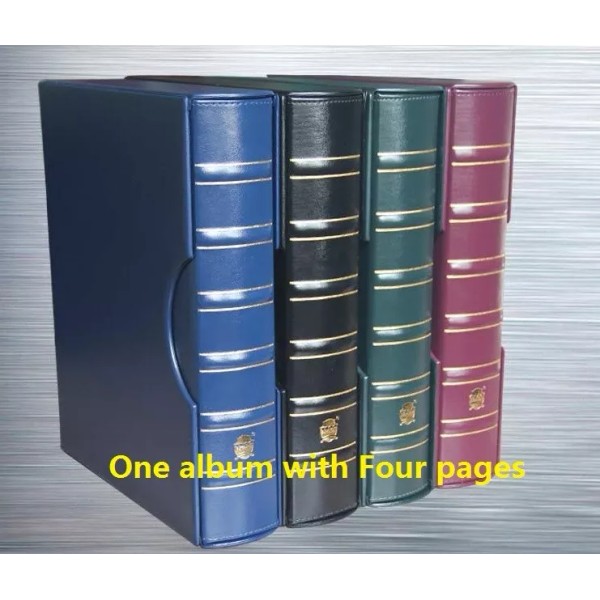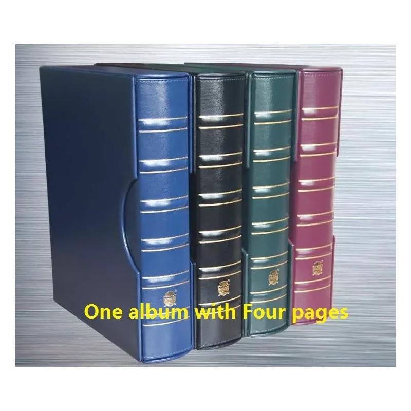 One 4-ring coin album with slip case and 4 pages. Each page holds 9 certified slabs (such as NGC, PCGS ) coin holders for a total of 36 certified coin slabs per album. Pages also sold separately.
