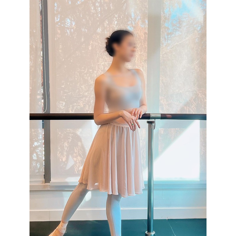 - In terms of fabric selection, it uses textured drape chiffon fabric, which is not only not easy to wrinkle, but also can show an elegant drape when dancing. The belt is made of elastic knitted fabric, which increases the comfort of wearing and is easy to put on and take off.