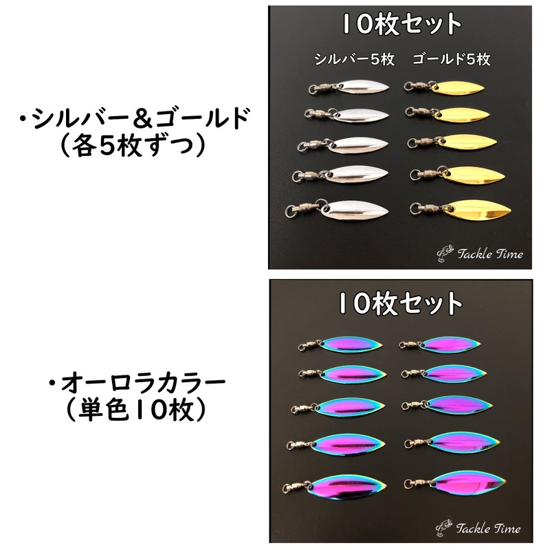 TackleTime Willow Blade Willow Leaf Spintail Blade Set (M, Aurora (10 Solid Color))