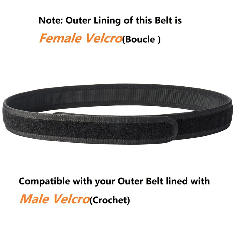 - Loop Inner Belt - This is a full length of LOOP(female vel-cro) outer lining. Fits 1.5"- 2" duty/outer belt lined with HOOK(male vel-cro) inner lining. Durable nylon loop on the outside and just enough hook area at one end of the inside to lock itself. Great heavy underbelt/light duty belt.