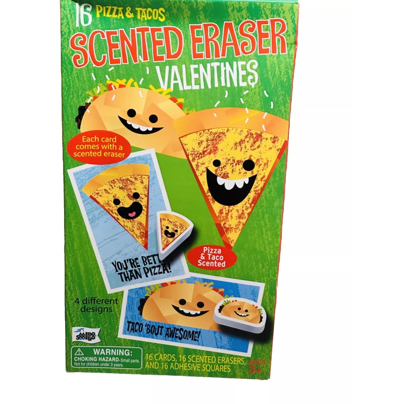Taco 16 Pizza And Tacos Scented Eraser Valentines 4 Different Designs Ages 3+
