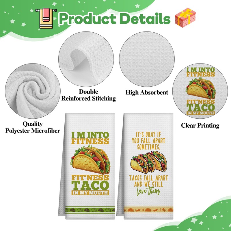 - 【Taco Funny Gifts Kitchen Towels 】: The decorative kitchen towels are printed with 2 patterns styles, with funny funny punny as a charming kitchen bathroom decoration can quickly capture the attention of others and show your taste, bringing life into your house. can bring you a good mood when using.