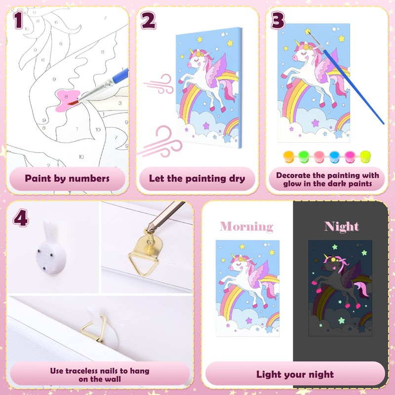 - Unicorn gifts for girls: Unicorn painting by numbers is a great gift for Christmas, Thanksgiving, Halloween, birthday, school day or just a daily surprise for your children. Cute DIY gift for decoration, paint by numbers from 7 years girls, paint by numbers from 9 years girls, paint by numbers from 6 years girls, craft set children from 6 years, craft set children 4 years, craft set girls 8 years, girls gifts 7 years, unicorn toy.