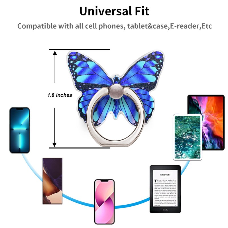 - Specifications: Aviation aluminum butterfly + zinc alloy finger ring buckle, High-quality material combination, strong and durable. Beautiful butterfly print design, the size is 1.8*1.8*0.3(inches).