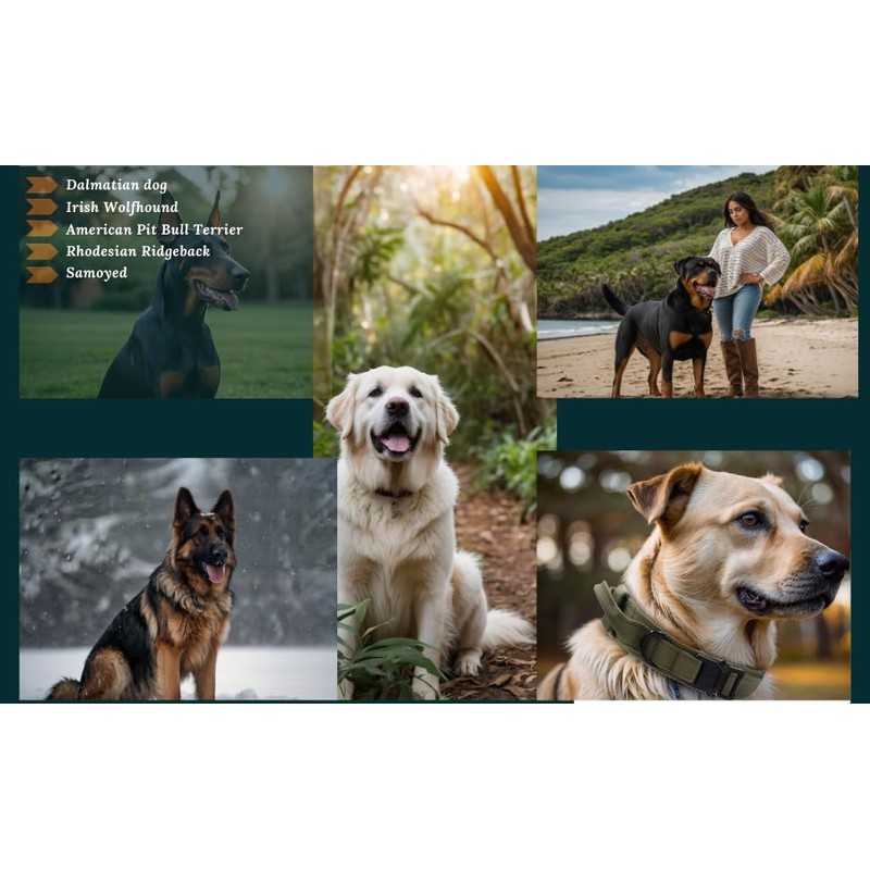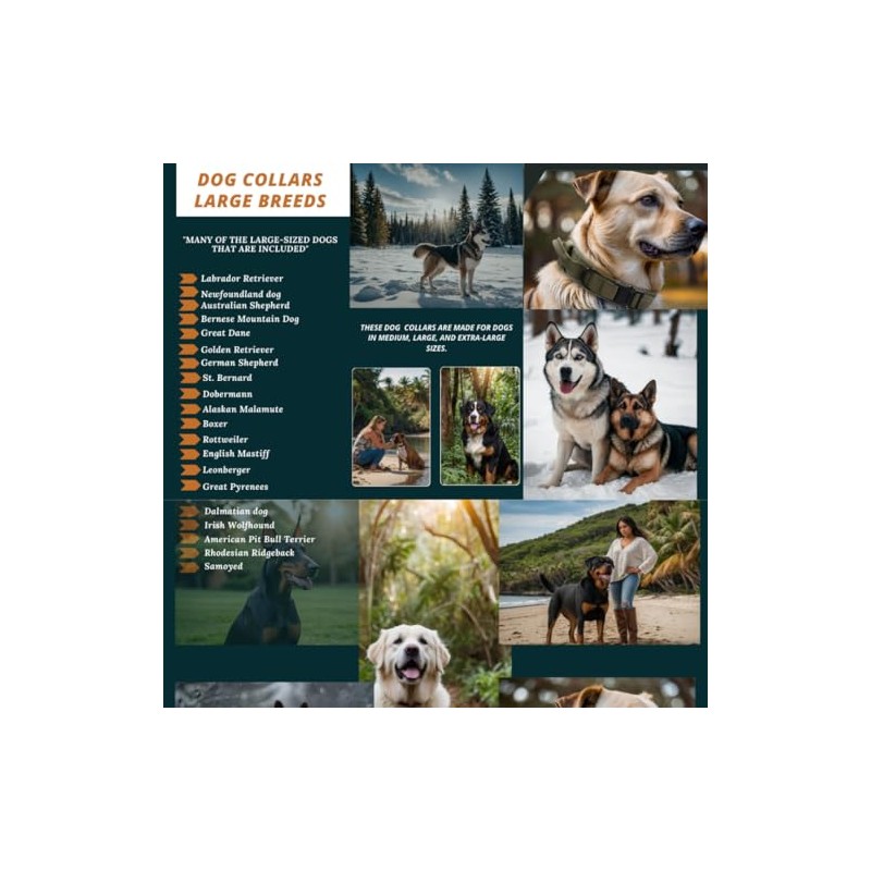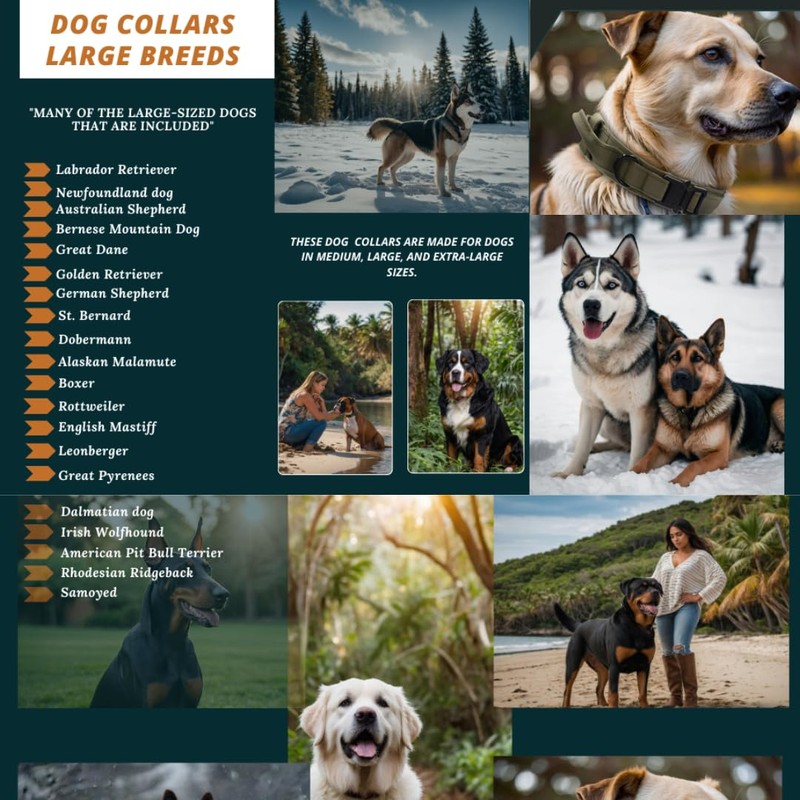 - MILITARY-GRADE DOG COLLAR ]: The Dog Collar has control handle ,can control your dog when training, patrol,hiking, jogging, camping, working, running, jumping, traveling, camping. Fits lots of medium and large dogs like German Shepherd, Border Collie, Rottweiler, Great Dane, Doberman, Golden Retriever, Husky, Labrador, Alaskan Malamute,etc.