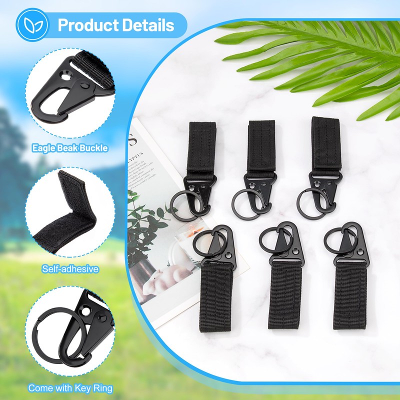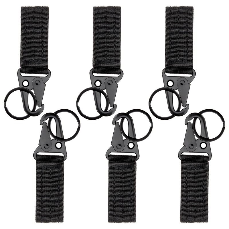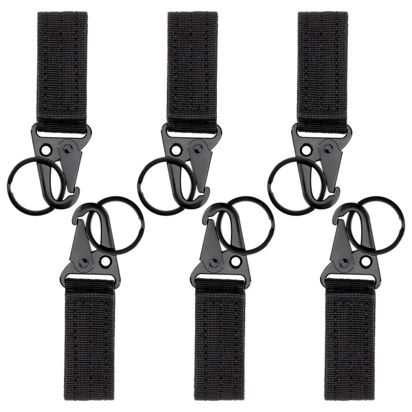 Tactical Hanging Keychain Belt Carabiner Key Hook Nylon Molle Webbing Hanging Buckle for Mountaineering Camping Hiking Pack of 6 (Black)