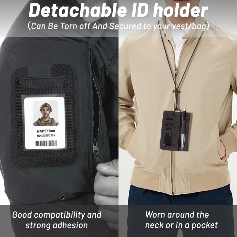 - Detachable Design: Featuring a detachable hook & loop system, this id badge holder with pen holder is ideal for quick access and convenience. It's a military id holder built to serve as a tactical lanyard for id badges with maximum flexibility.