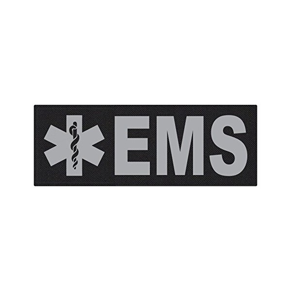 TACTICAL IDENTIFICATION PATCHES EMS Patch - Star of Life - 11x4 - Gray Lettering - Black Backing - Hook Fabric