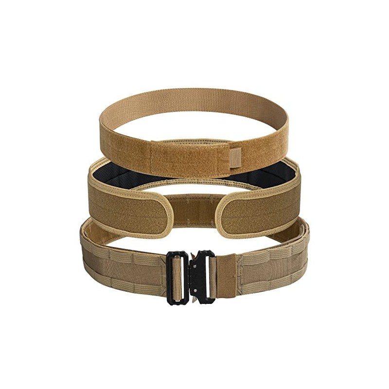 - TWO IN ONE DESIGN: Our molle belt interchangeable design gives you two belts in one system. The Outer MOLLE belt width: 2" with 1.75’’ inner belt fits in most belt loops and 2.25’’ Anti-Slip pad allows you to comfortably wear over your clothing on the waist. capable of attaching OWB holsters, mag carriers, admin pouches, IFAKs, or other gear. The outer belt can be used in conjunction with the included super comfortable anti-slip pad inner belt, or with a loop liner inner belt.