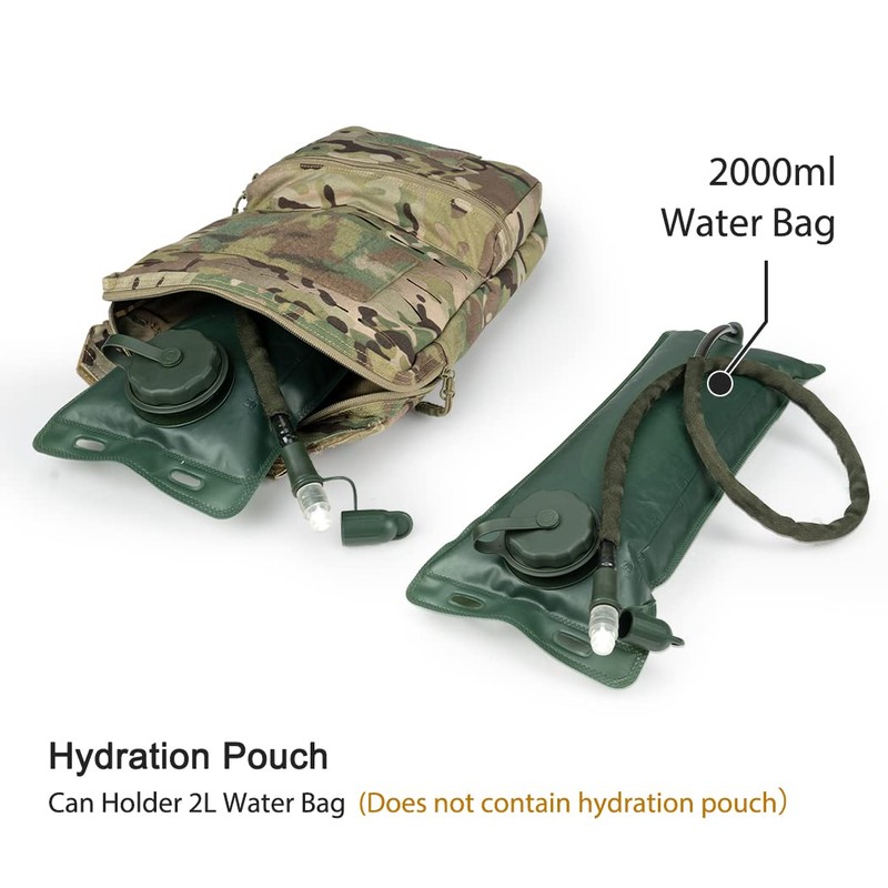 - PACKAGE INCLUDE: Tactical MOLLE Hydration Pack for 2L*1, the water bladder is NOT included.
