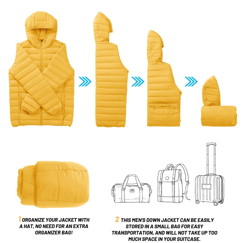 - Warm and Lightweight: This hooded puffer jacket is designed to keep you warm and dry in cold and damp weather without weighing you down. It is also highly portable and can be easily packed into your backpack, leaving plenty of room for other essentials.