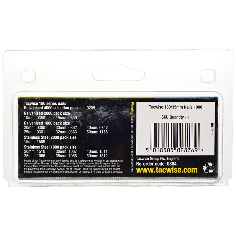 Tacwise 0364 Type 180 / 35 mm Galvanised 18G Brad Nails, Pack of 1,000