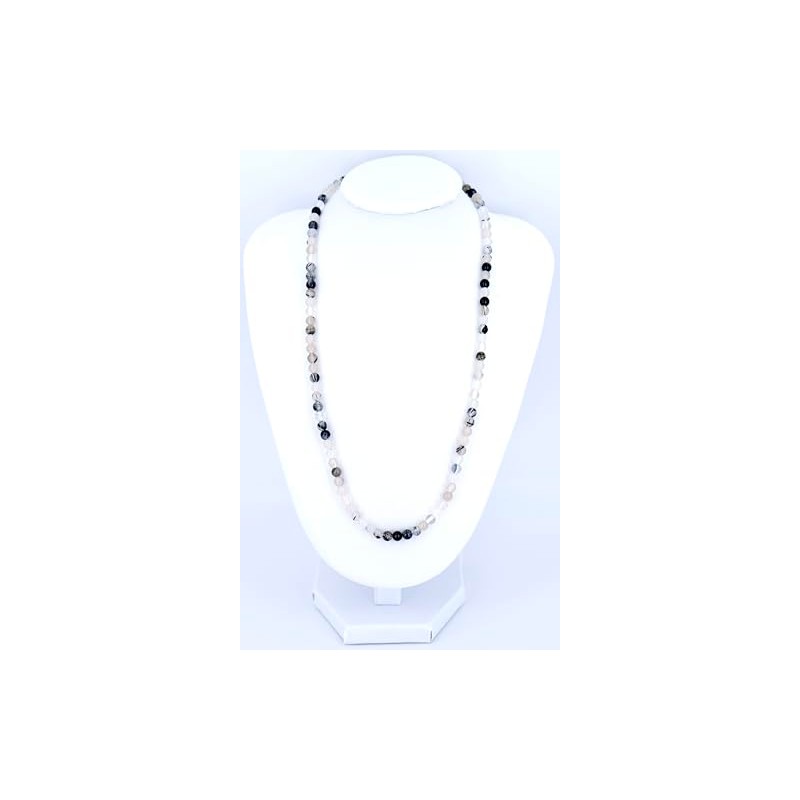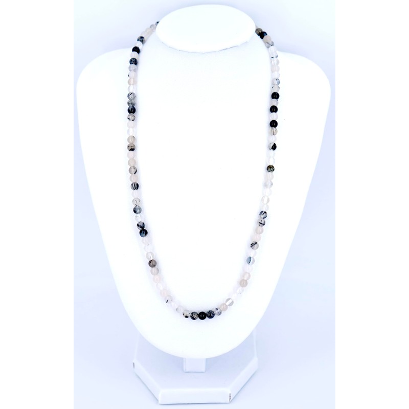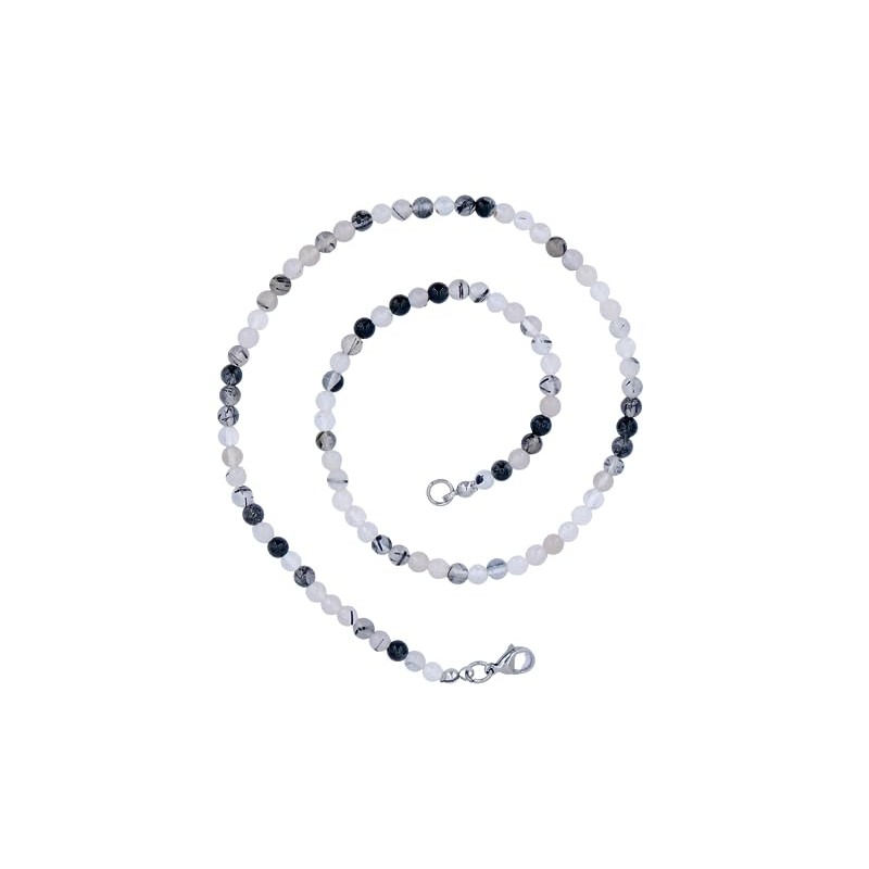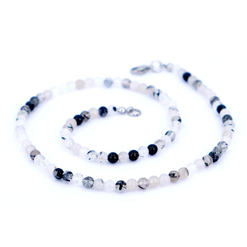 Taddart Minerals - Black and White Natural Gemstone Tourmaline Quartz Necklace with 4 mm Balls and 45 cm Length - Handmade, Tourmaline Quartz
