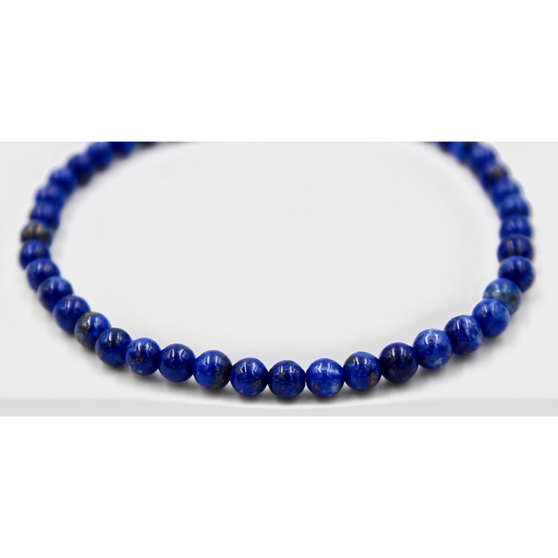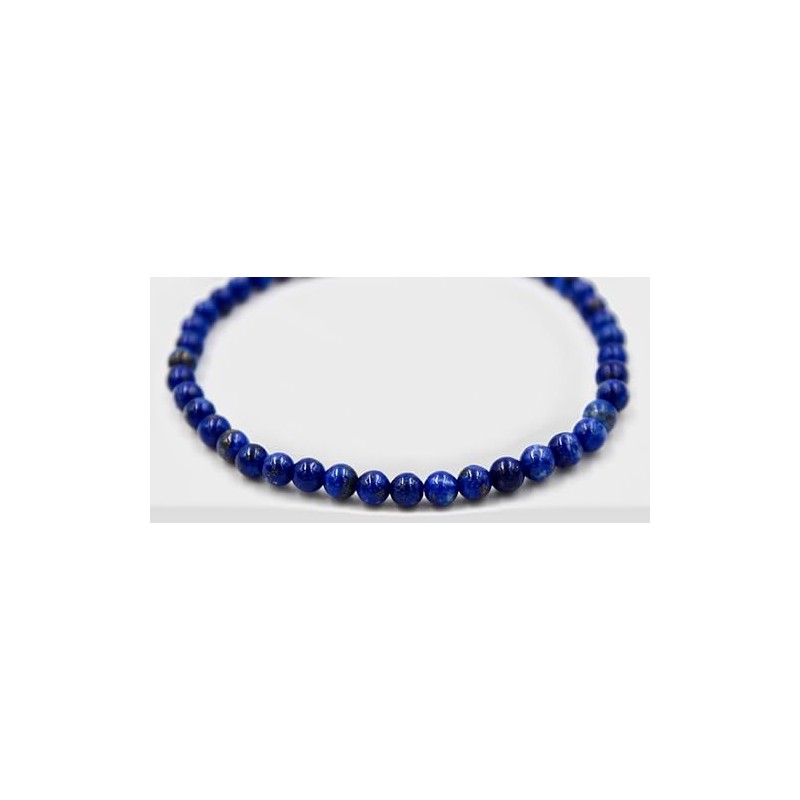 Taddart Minerals Natural Gemstone Lapis Lazuli Blue Bracelet with 4mm Balls on Elastic Nylon Thread - Handmade, Rubber, Lapis Lazuli
