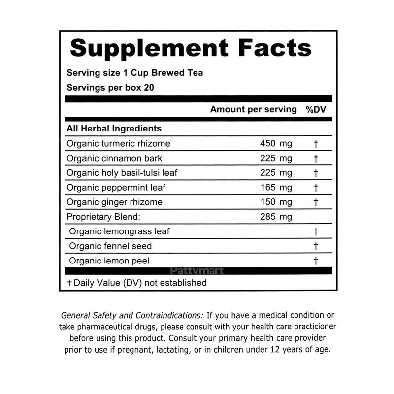 Tadin Organic Turmeric Ginger Herbal Tea. Immune System Booster. Digestive Health Supplement. Caffeine Free. 20 Teabags