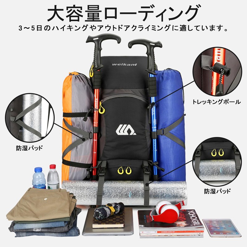 - Hiking Gear 50L Large Capacity: Hiking daypack has a maximum capacity of 16.4 gal (50 L). Spacious main compartment and many large capacity pouches, you can keep your items organized and easy to find. This backpack can hold tents, mats, sleeping bags, trekking poles, clothes, hiking shoes, parasols, cookware and accessories. Internal mesh pocket compartment on backpack for easy storage and combination. With its large capacity, the 50L backpack is fully compatible for 3 day trips. If you have an idea for short periods of climbing or going out, this backpack will be happy to load everything. He is a good backpack choice for spring, autumn climbing, winter skiing, etc