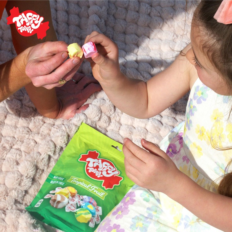 • Each taffy piece is twisted in a wax wrapper with the trademark red Taffy Town lettering to help our ever-growing fan base identify our product wherever it may be sold.