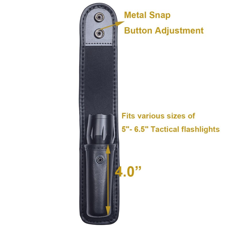 - ADVANCED DESIGN:Molded construction flashlight holder with durable exterior and soft lining ,Full flap helps secure canistere,Hidden snap closure on Flash Light pouch helps to hide better for law enforcement in the dark and looks perfect.