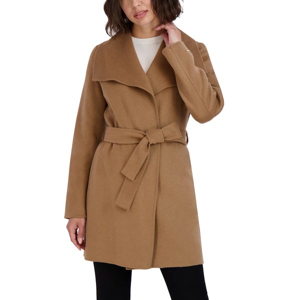 Tahari Women's Double-Faced Luxury Soft Blend Peacoat-Wrap Wool Coat with Removable Belt, Cream Camel, Small