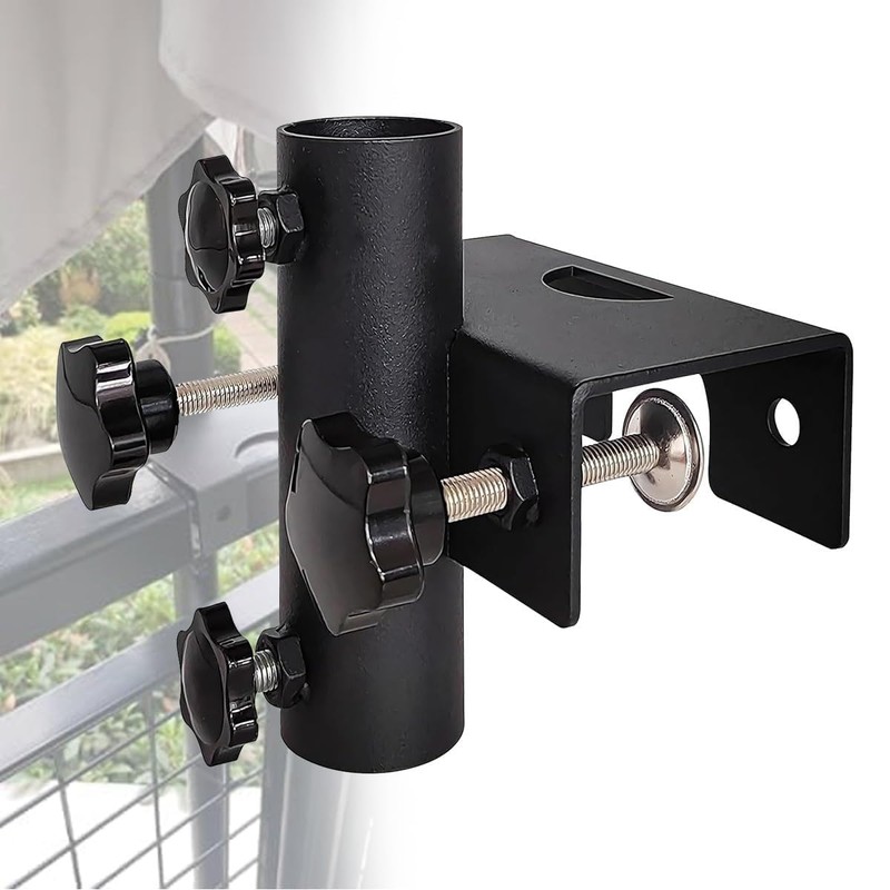 - Easy installation: the umbrella holder for balcony railings requires no tools and no drilling. Simply attach the parasol stand to the parapet and tighten the screws. Parasol holder is adjustable by screws and easy to remove, it can be easily clamped and attached to the railing.