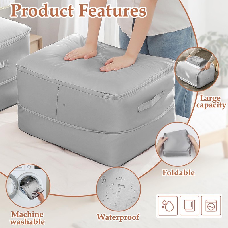 • Large capacity construction: as storage for duvets, its pre-compressed room size is 52 x 42 x 60 cm, which is very suitable for storing large quilts, heavy clothes, etc. The large capacity is enough to easily meet the storage requirements of seasonal clothes.