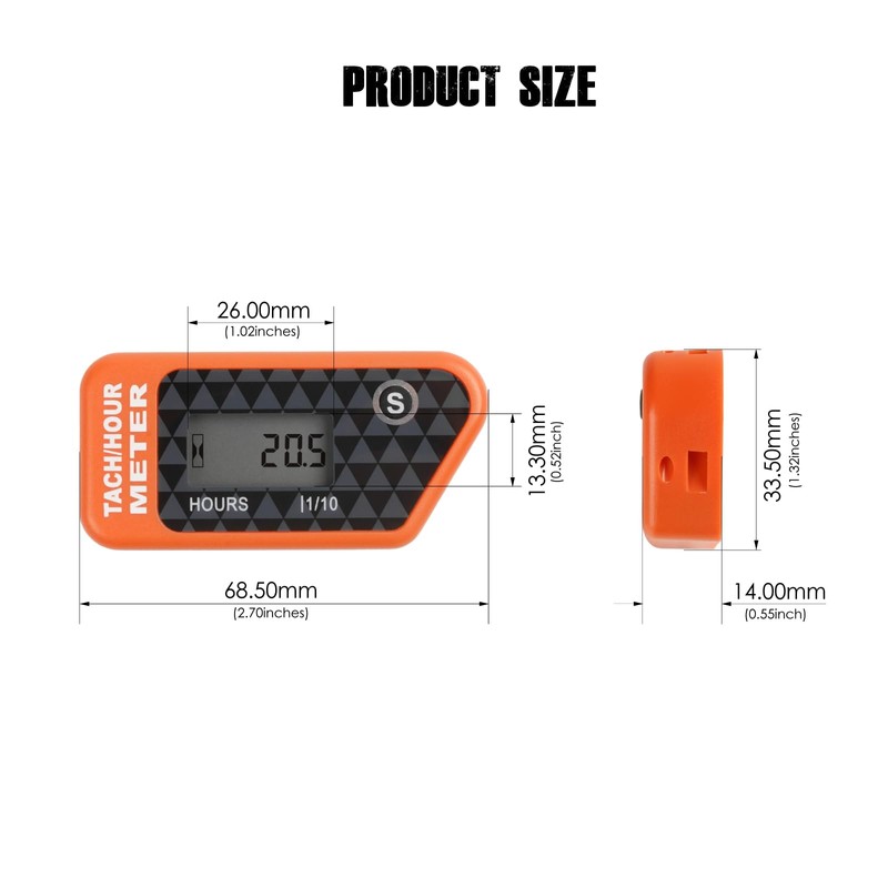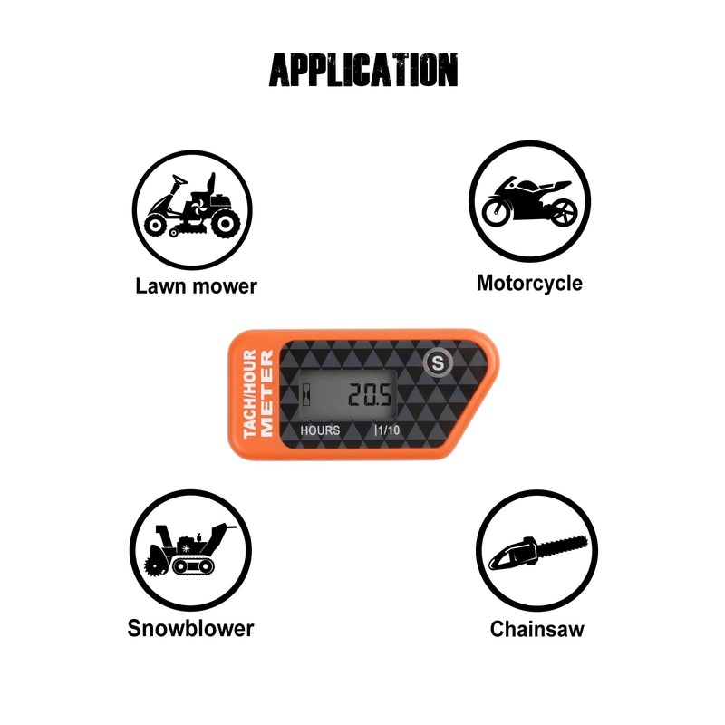 Taikemeti Operating Hour Counter, Tachometer, Waterproof Function, Can Be Applied to Gas Powered Lawn Mower, Snow Blower, Engine, Golf Cart, Forklift (Orange)